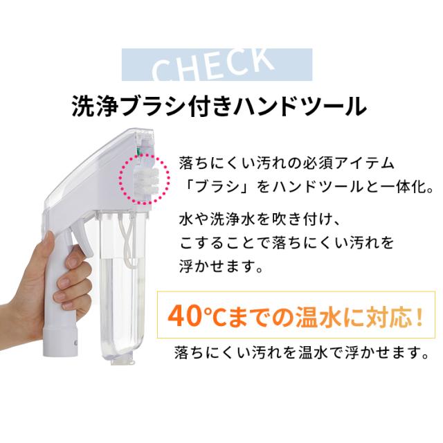 水を吹きつけながら、カーペットの汚れをすすいで強力吸引!