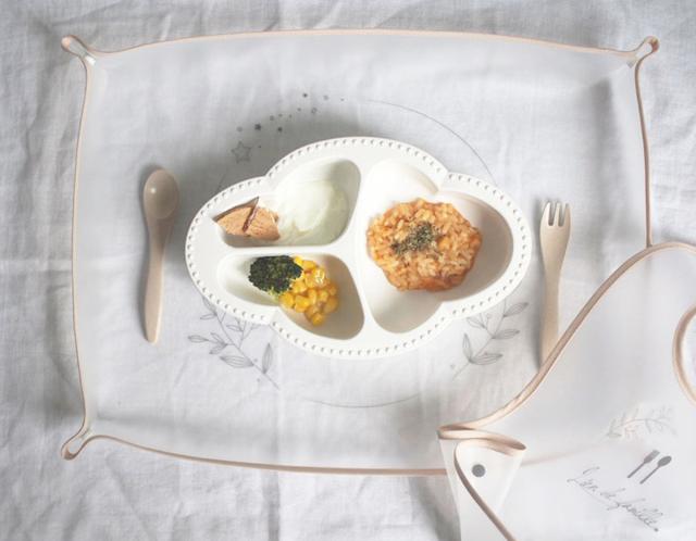 毎日のお食事に欠かせないマットとエプロンはお手入れのしやすさも重要なポイント。EVAという水分や汚れを弾く合成樹脂でできているので、水でサッと流すだけで簡単にお手入れができます。