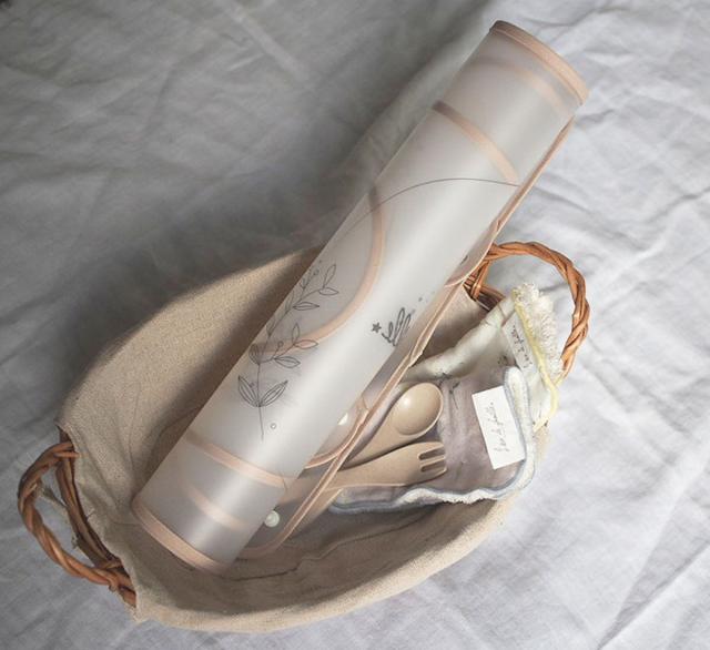 スナップボタンを外すと平らになるので、くるくると丸めてコンパクトになり、お出かけの際もカバンの中でかさばりません。専用ボックス入りで、贈り物にもお薦めです。