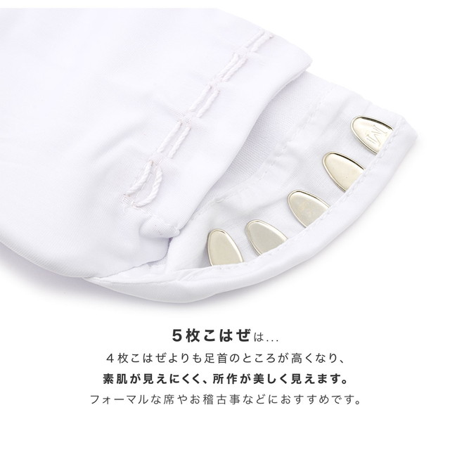 5枚こはぜで足首まできっちり留められ、礼装用にもお使いいただけます。
