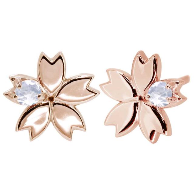 ピアス レディース ロイヤルブルームーンストーン 桜 さくら 人気 10金 大人 母の日 2023