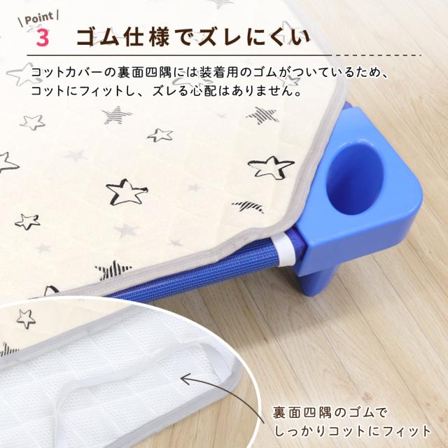 お昼寝 コットカバー 60×100cm 裏面メッシュ 裏面防水 オーガニックコットン 綿100% パイル キルト コットシーツ スター 星 北欧アニマル 四隅ゴム付き ネームタグ付き お昼寝コット 午睡コット 保育園 幼稚園 入園準備 un doudou