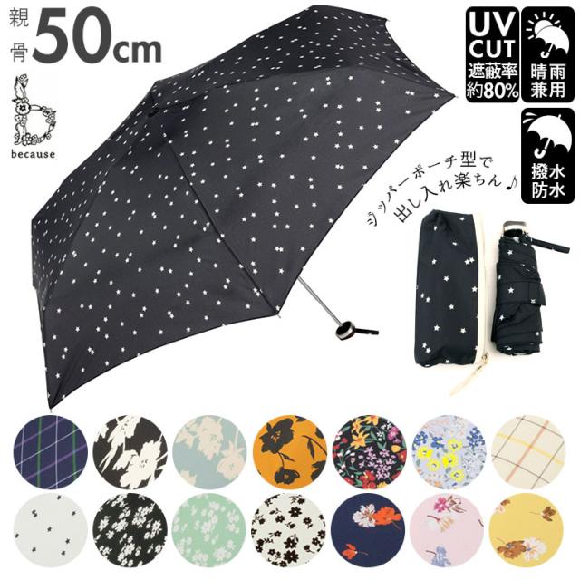 折りたたみ傘 レディース 通販 because 傘 軽量 ブランド 折り畳み傘 晴雨兼用 50cm 50センチ uvカット 日傘 折りたたみ 日傘折り畳み 晴雨兼用傘 ミニ 折傘 おしゃれ 通勤 通学 雨傘 かさ 雨具 レイングッズ