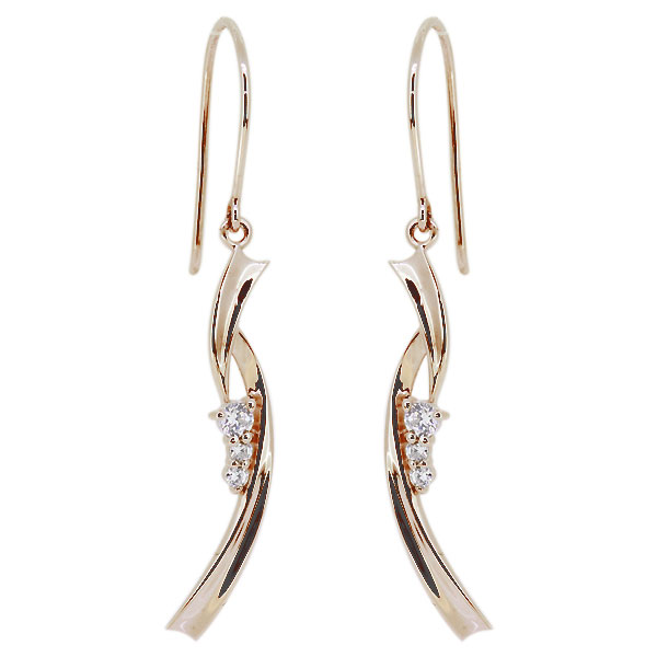4月誕生石ダイヤモンドを使用した10金製の、ウェーブラインデザインフックピアス(アメリカンフック)です。
