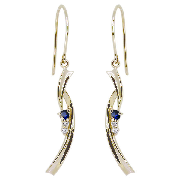 9月誕生石サファイアを使用した18金製の、ウェーブラインデザインフックピアス(アメリカンフック)です。