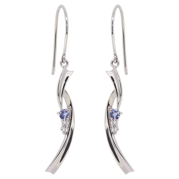 12月誕生石タンザナイトを使用したプラチナ製の、ウェーブラインデザインフックピアス(アメリカンフック)です。