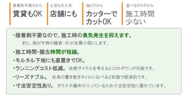 接着材不要なので施工時の嫌な臭いがせず、施工時間も短縮できます。