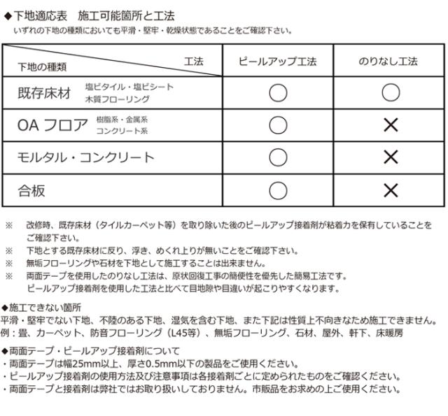 ウラ面は波形もようの独自のスベリ止め加工がされていて、のりなし施工が可能。