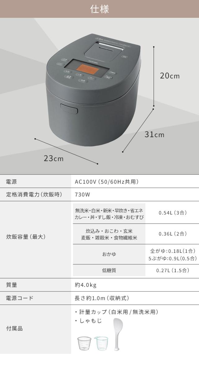 炊飯器 3合 IHジャー炊飯器 3合 RC-IL30-HA RC-IL30-W アッシュ ホワイト 全2色 IH ジャー 炊飯器 3合 米 低温調理 パン ケーキ 白米 無洗米 新米 玄米 雑穀米 おこわ 炊込み おかゆ タイマー 早炊き ごはん ご飯 アイリスオーヤマ 送料無料