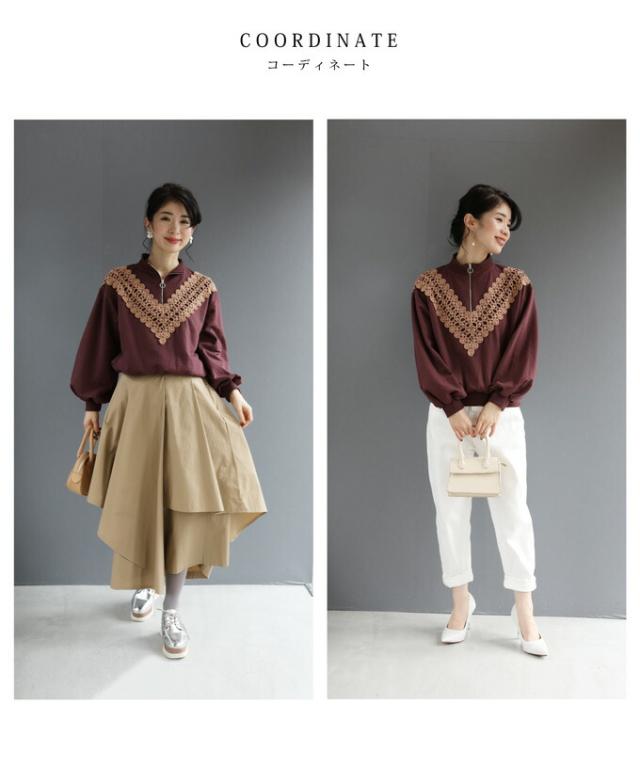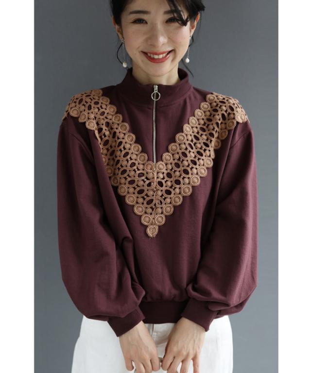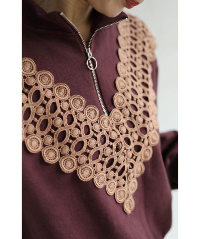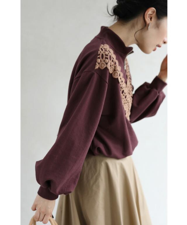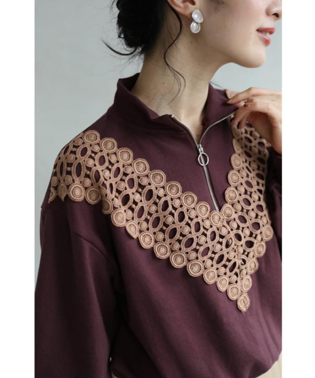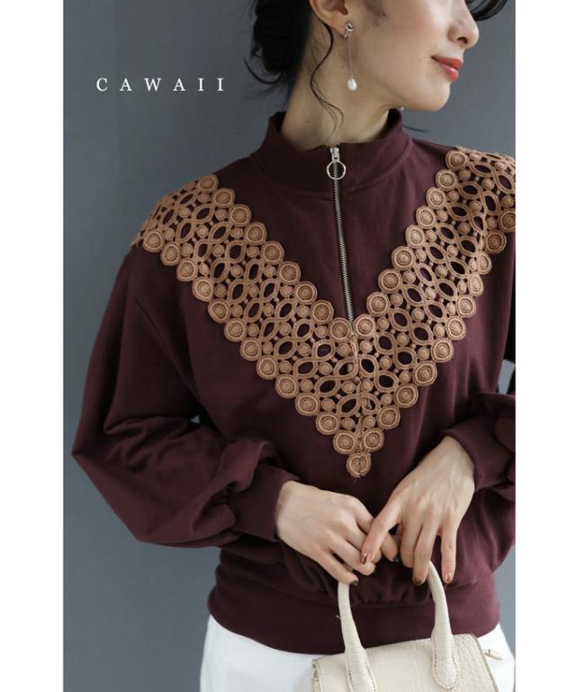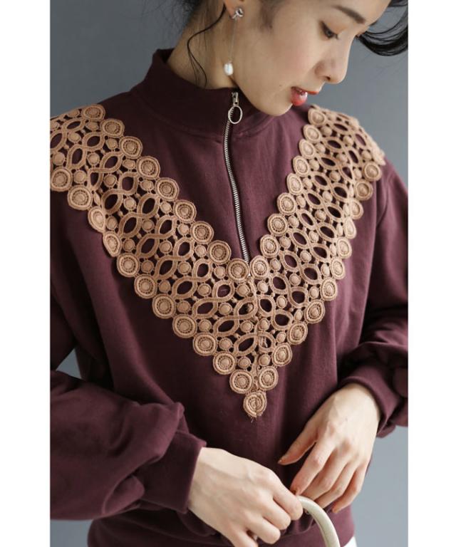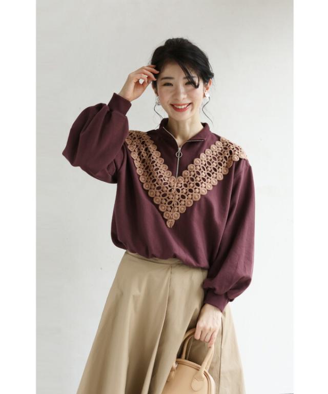 新作 新着 再入荷 CAWAII FRENCHPAVE フレンチパヴェ エレガント ベーシック カジュアル 可愛い かわいい カワイイ おしゃれ オシャレ お洒落 個性 個性的 定番 ベーシック 大人かわいい 大人可愛い 上品 女性らしい デザイン スタンダード ナチュラル きれいめ キレイめ シンプル フェミニン V型サークルレース 目を惹く ジップ プルオーバー トップス 長袖 長そで ロング袖 Vネック S M L フリーサイズ フリー 小さめ 小さめサイズ小さい 小さいサイズ 低身長 痩せ ほっそり 小柄 細身 標準サイズ 大きめシルエット 大きい 大きめ ビッグシルエット ぽっちゃり F サイズ自由 秋 冬 秋服 秋物 冬服 冬物 ストレッチ 伸びる 伸縮性 のびのび ワイン マルーン 日常着 普段着 日常使い ヘビロテ 毎日着れる