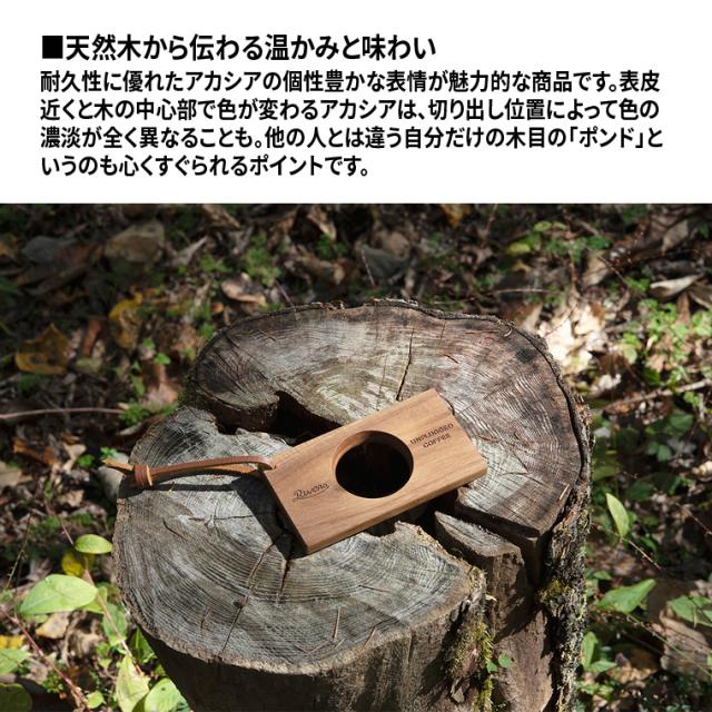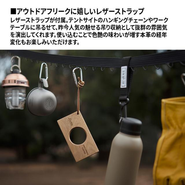 ドリッパーは柔らかいゴム製なのでタンブラーに収納することもできて、天然木のホルダーはカラビナに引っ掛けたり、ハンギングチェーンに吊るしておけるアウトドアシーンにマッチするアイテムです。
