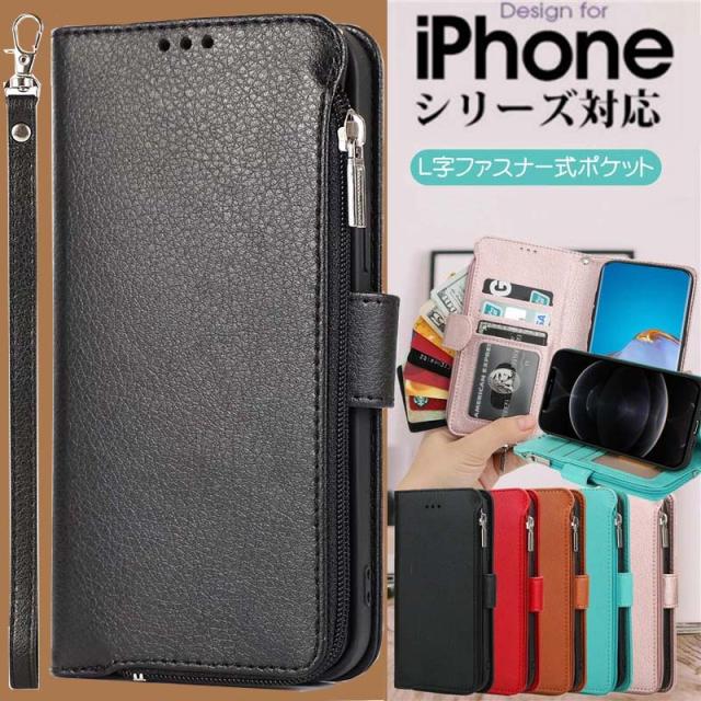 iphone 12mini ケース 財布型 iphone 12 ケース 12promax 手帳型ケース おしゃれ アイフォン12 12pro カバー iPhone13 12 11pro XR Xs 8 7 se2 6s Plus コイン ストラップ付き 耐衝撃 革 小銭入れ スマホケース iphone12 L字ジッパー 大人上品 マイクロファイバーレザー