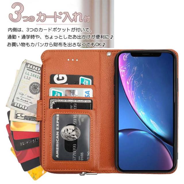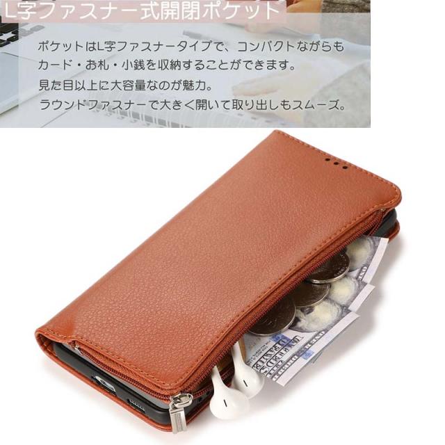商品:ジッパー式ポケット付き手帳型ケース
