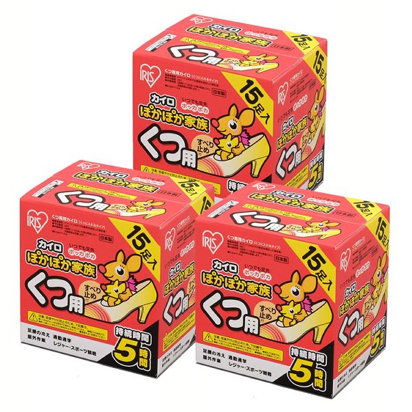 カイロ 貼らない 足 貼らないカイロ 靴用カイロ 45足 (15足入×3個) すべり止め付 足先 温める 使い捨てカイロ 貼れない くつ用 足用 使い捨て 屋外作業 レジャー スポーツ観戦 通勤 通学 冬 防寒 寒さ対策 アイリスオーヤマ ぽかぽか家族 PKN-15K #