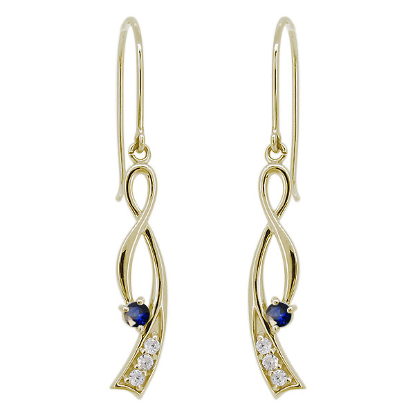 9月誕生石サファイアを使用した18金製の、インフィニティ(無限)モチーフのフックピアス(アメリカンフック)です。