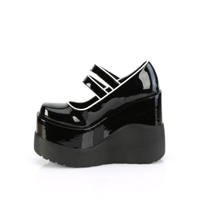 Demonia(デモニア) VOID-37 ダブルストラップ ウェッジソール厚底パンプス エナメル黒◆取り寄せ