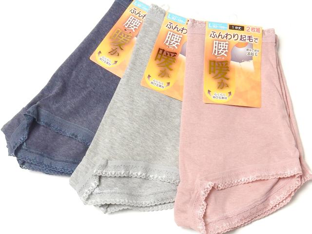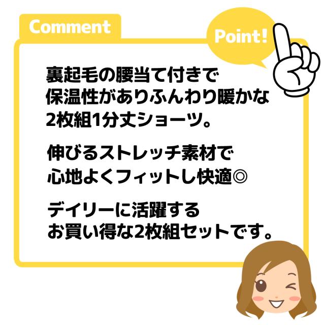 【送料無料】2枚組セット 婦人 レディース 1分丈 ショーツ 腰当て付き 腰当て部分裏起毛 ふんわり暖か 伸びる素材で心地よくフィット 肌着 下着 インナー M L LL yg-0953【メール便対応】
