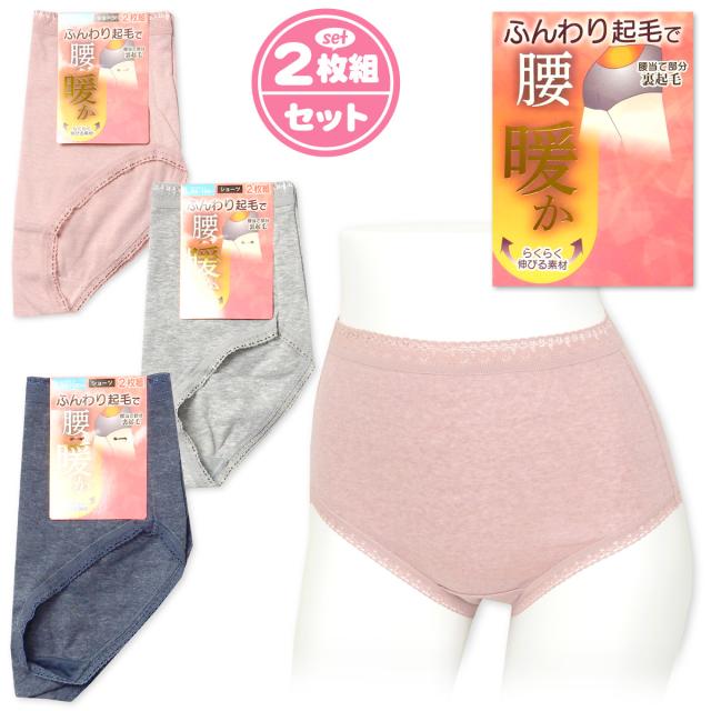 【送料無料】2枚組セット 婦人 レディース ショーツ 腰当て付き 腰当て部分裏起毛 ふんわり暖か 伸びる素材で心地よくフィット 肌着 下着 インナー M L LL yg-0954【メール便対応】