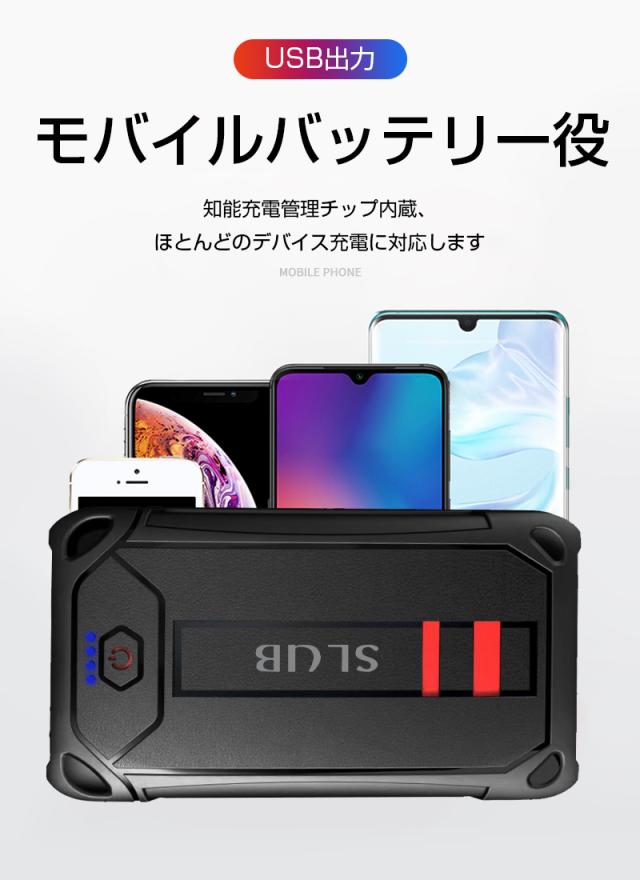 【モバイルバッテリー役】16000mAhのバッテリー、車のバッテリー上がりに使えるだけでなく、USB-Aポートを搭載しており、モバイルバッテリーとしてもお使いいただけます。