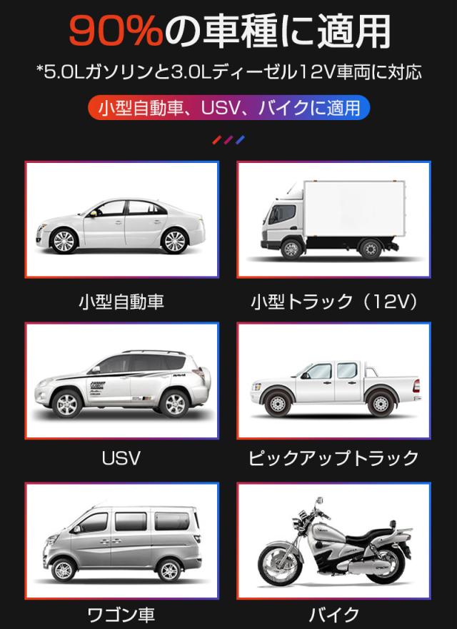 エンジン5.0Lまでのガソリン車、3.0Lまでのディーゼル車に対応。
