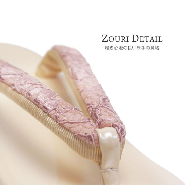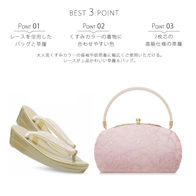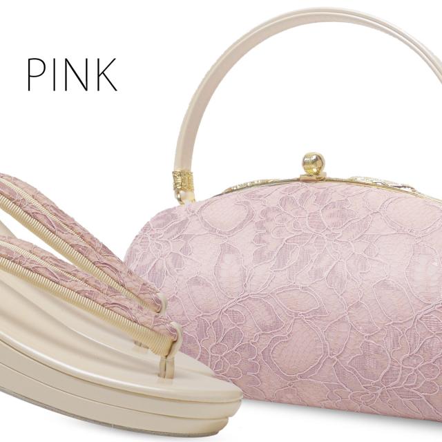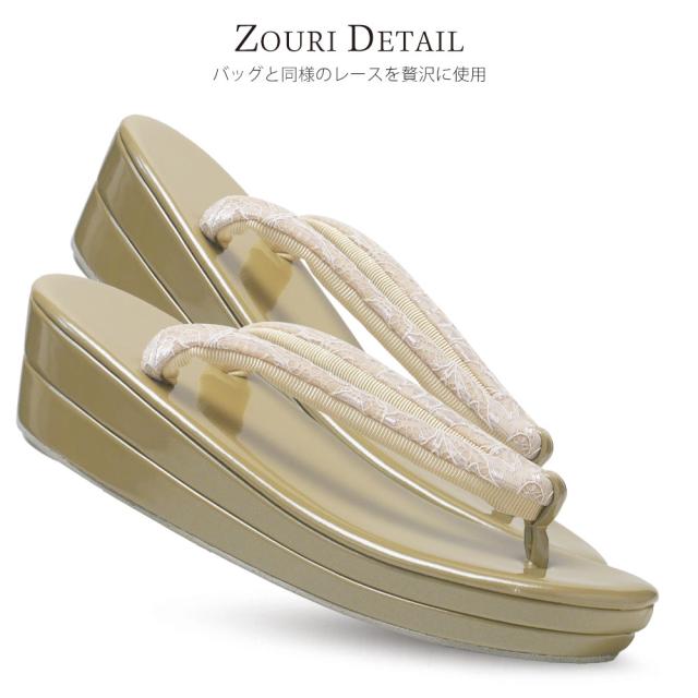 華やかな総柄レースと、あたたかいニュアンスカラーを組み合わせた、新しい草履バッグセットです。
