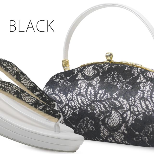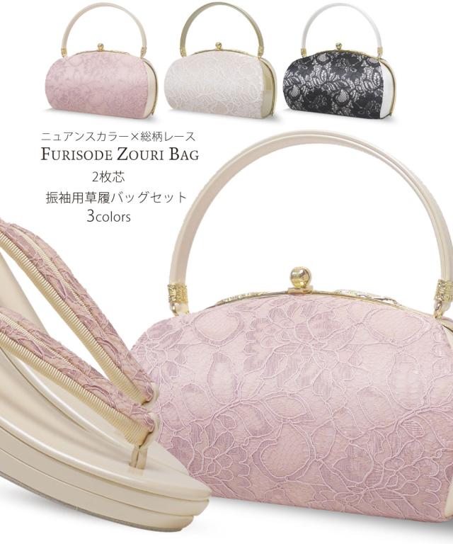 草履バッグセット 総柄レースが美しい 振袖用 2枚芯 選べる 3色 ブラック 黒 オフホワイト 白 ピンク かすみ ゴールド 振袖 小紋 くすみカラー ニュアンスカラー 大人色【フリーサイズ 24cm】【成人式 前撮り 卒業式 入学式 】 フェミニン系 訪問着にもご利用頂けます