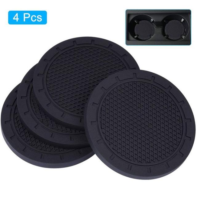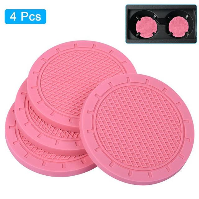 車用ノンスリップ コースター 4枚入 ドリンクホルダー用 カップマット PVC製 滑り止め 振動防止 丸型 直径約70mm ブラック ダークブルー ライトブルー ピンク 送料無料