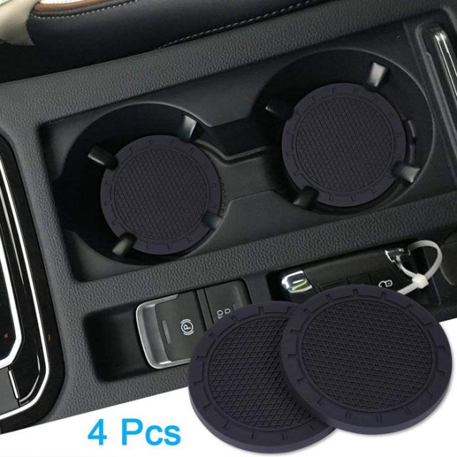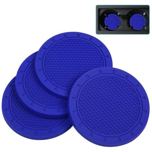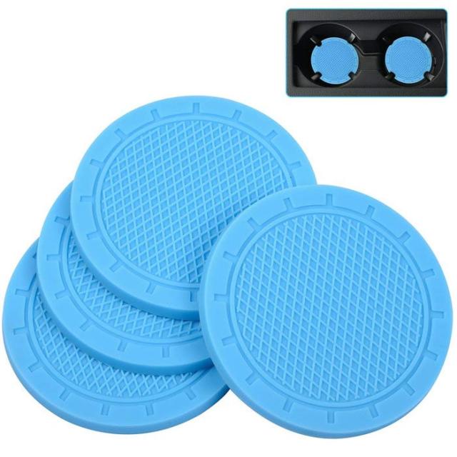 車用ノンスリップ コースター 4枚入 ドリンクホルダー用 カップマット PVC製 滑り止め 振動防止 丸型 直径約70mm ブラック ダークブルー ライトブルー ピンク
