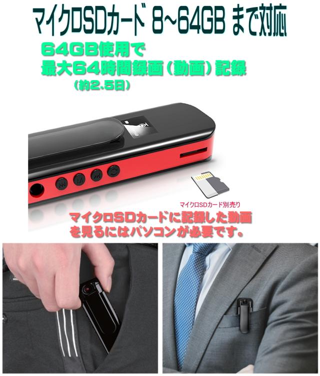 【マイクロSDカード】8GB〜64GBまで対応。録画時間は64GBで最大64時間連続録画!ループ録画(上書き)機能あり。