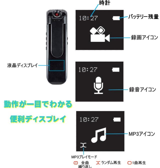 小型液晶ディスプレイ装備、一目で動作確認ができますので便利です。
