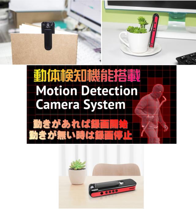 【動体検知】動体検知機能付。動きがあるとマイクロSDカード即時録画を開始!1分間動きが無いと録画停止。