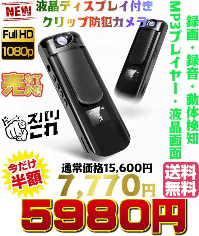 最新 超小型液晶画面付きポータブルクリップ防犯カメラ 正規品(製造メーカー直輸入品)