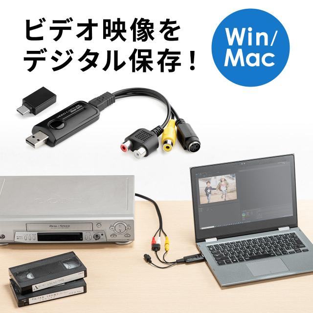 USBビデオキャプチャー ビデオテープ miniDV デジタル化 S端子 コンポジット接続 Windows Mac対応[400-MEDI039]
