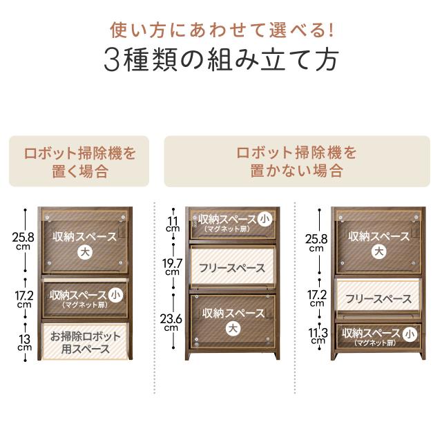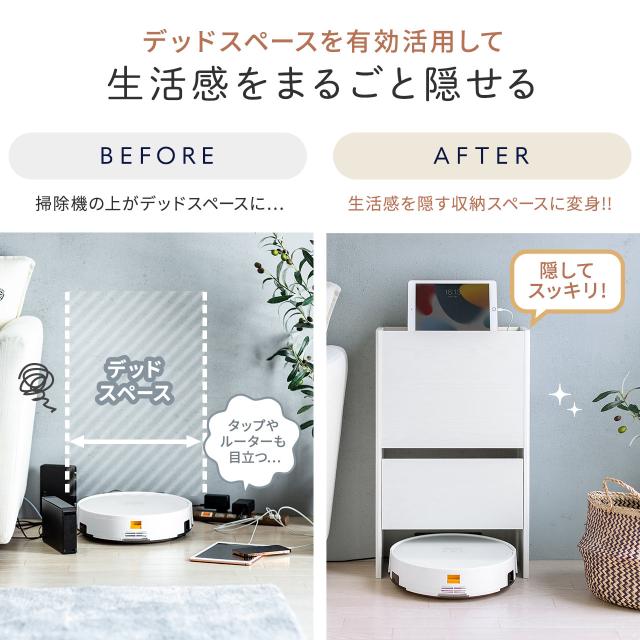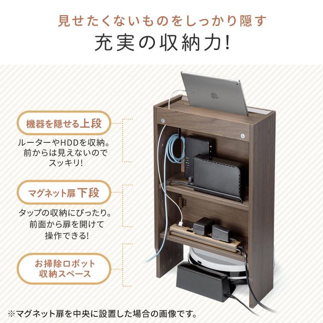 ●ケーブルや電源タップ、Wi-Fiルーターなどを収納できます。●ロボット掃除機を下部に設置できます。※完全に収納できません。