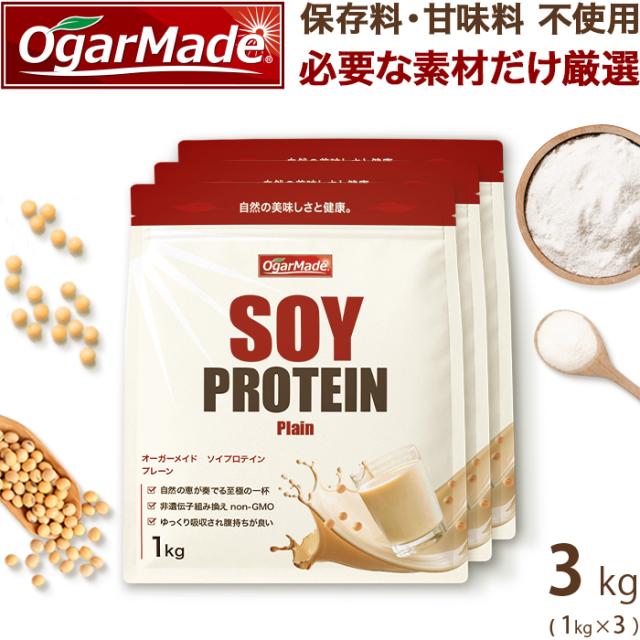 ソイプロテイン 3kg プレーン 人工甘味料が気になる方 ノンフレーバー 国内製造 大豆プロテイン (OgarMade) オーガーメイド