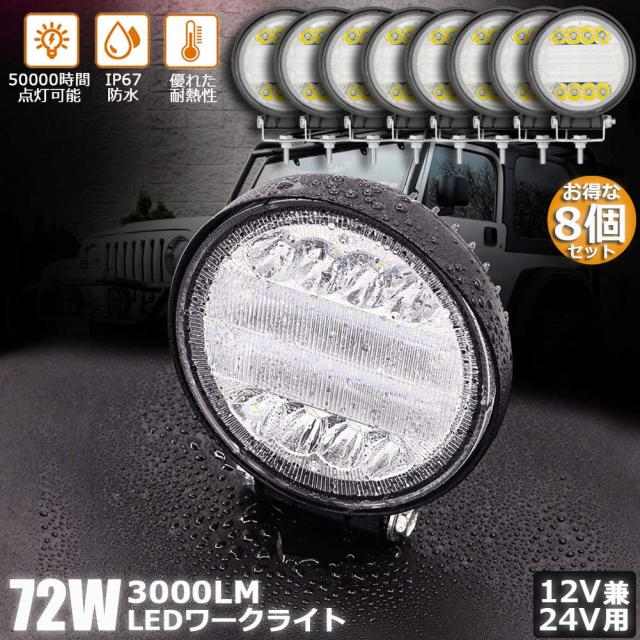 72W LED作業灯 ワークライト デッキライト 8個セット LED投光器 72w 12v 24v 兼用 防水 防塵 防震 取付け自由 省エネルギー コンボビーム 集光 投光両立 各種作業車に対応 前照灯