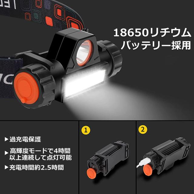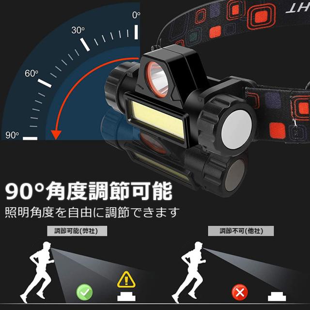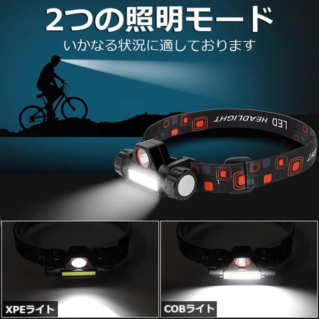 ヘッドライト 充電式 LEDヘッドライト LED ヘッドランプ COB作業灯 磁気付き USB充電式 軽量 防水 照射角度90°調節 夜釣り 停電 防災 夜釣 登山 作業 キャンプ 散歩 アウトドア用