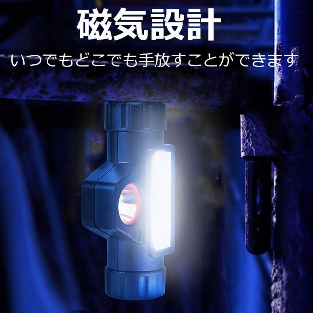 【デュアル光源/角度は90度調節可能】:XPEライトとCOBライトは、様々なシーンをカバーすることができます。LEDの明るさは300ルーメンに達すことができます。 照明角度は90度に調整でき、必要によって角度を自由に調節できます。【磁気搭載】:磁石は本体と一体式なデザインを採用して、金属に取り付けて手を解放することができます。クイック取り外すデザインを採用し、懐中電灯として使用できます。