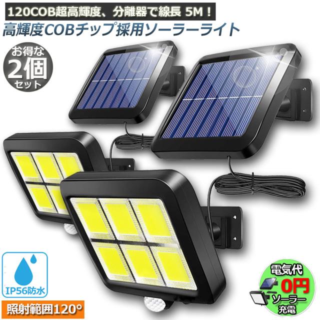 センサーライト 防犯ライト ソーラーライト 120COB 2個セット 5mコード付き ガーデンライト アウトドア ソーラーフラッドライト モーションセンサー付き キュリティライト 照明 IP65防水 防犯 人感 防水 屋外照明 太陽光発電 アウトドア 庭 玄関 駐車場 通路