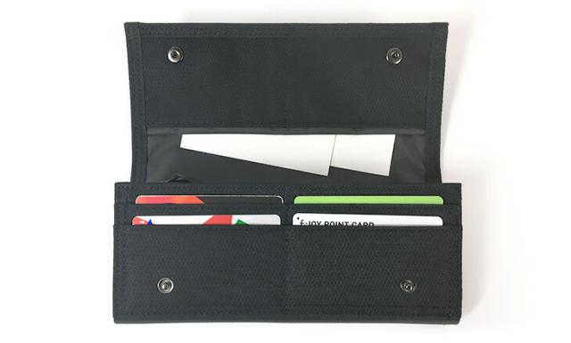 | 素材 | 表:コーデュラ(R)ポリエステルリップストップ(ウレタンコーディング/PVC加工) 裏:ナイロンオックス(ウレタンコーティング) 軽量で摩擦強度に優れたコーデュラ(R)リップストップ生地を使用した小物のシリーズです。 ポリエステルリップストップの格子状に入った生地目の光沢感がアクセントとなっています。金具は上品な光沢のある黒ニッケルメッキで、ポイントに革の引き手を使用しているので落ちついた雰囲気があります。メイン素材はポリエステルながらも、上品さを感じさせるカジュアルシックなデザインでビジネスシーンでもお使いいただけます。 |