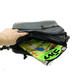 メイン収納部分のファスナーは2重になっており、盗難防止にも役立ちます