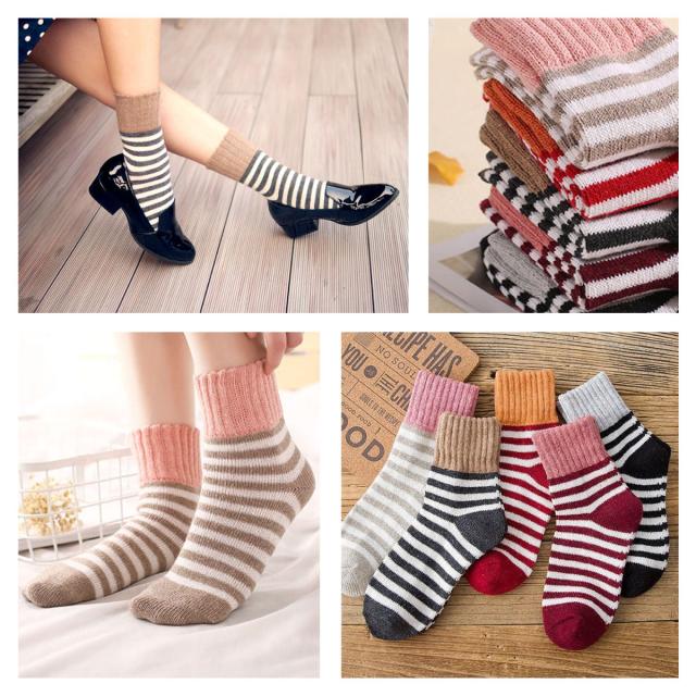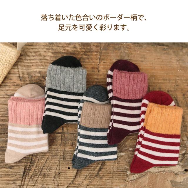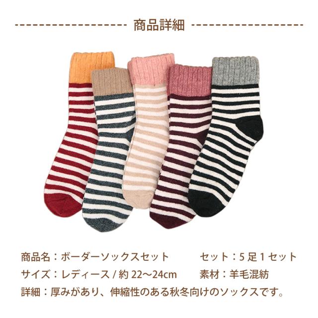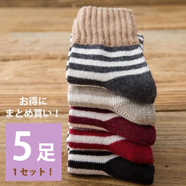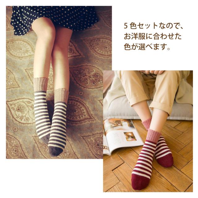 レディース 靴下 ボーダーソックス 5足セット ソックス 暖かい おしゃれ ロークルー カラフル 大人 かわいい 冷房対策 保温 厚手 防寒対策 冷え 冷え性対策 socks10 sh_of