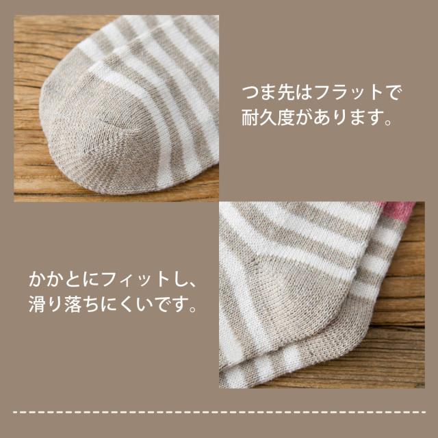 落ち着いた色合いのボーダー柄で、足元を可愛く彩ります。