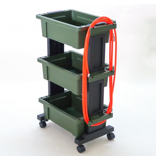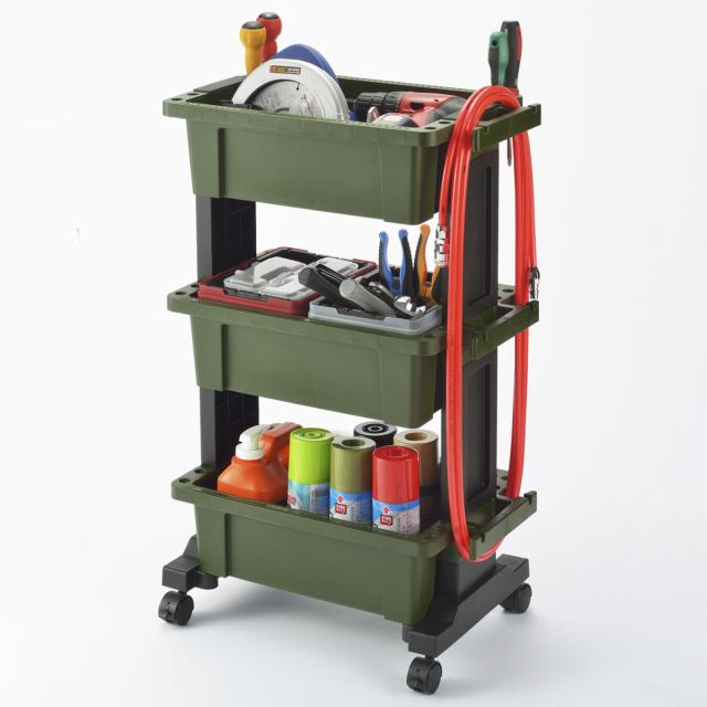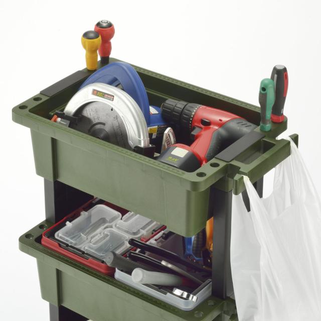 総耐荷重約30kgと頑丈で便利な機能満載のツールワゴンです。ワークスペースやお家でのガレージ作業、DIY、ガーデニングなどのアウトドアシーンで活躍します。頻繁に使用する物をワゴンにまとめておけば、必要な時に必要な場所に移動して、サッと手に取れるので作業効率もアップします。