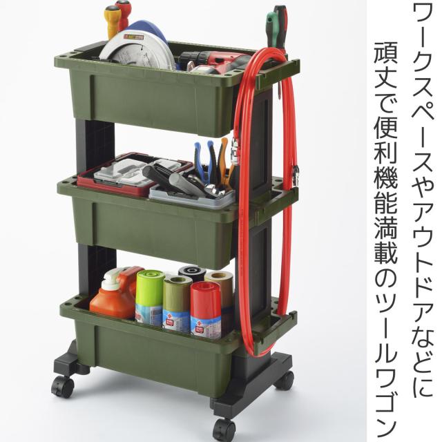 ツールワゴン ボックス3段 ( ツールボックス ワゴン ツール カート コンテナ ボックス 収納 キャスター付き 工具箱 工具ワゴン 工具カート 日本製 ガレージ作業 DIY ガーデニング 作業 三段 台車 工具置き 整備 )