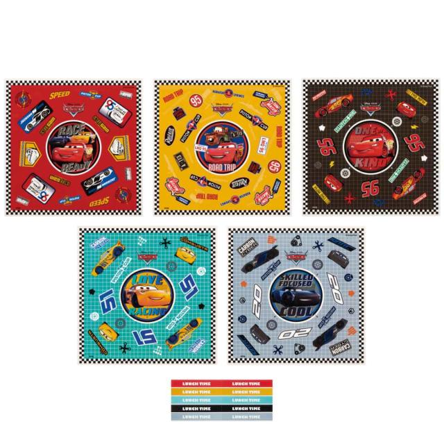 ライトニング・マックィーン、メーター、ジェフ・ゴルベット、ルイス・ハミルトンがデザインされた5種類のシートがそれぞれ2枚で、合計10枚入っています。ご飯を包んだ後にシートを留めるシールも付いています。それぞれデザインが異なるので、その日の気分に合わせてご使用いただけます。