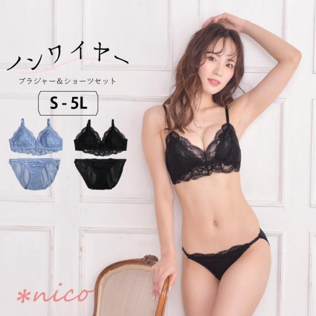 商品名(商品番号):S-5L ブラジャーノンワイヤー ブラジャー&ショーツセット (j-2038-n)