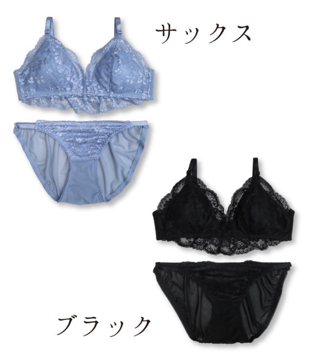 S-5L ブラジャーノンワイヤー ブラジャー&ショーツセット(J-2038-N)[メール便不可]【 S M L LL 3L 4L 5L ブラレット ブラセット 大きいサイズ 下着 ブラジャー ショーツ セット レディース インナー】