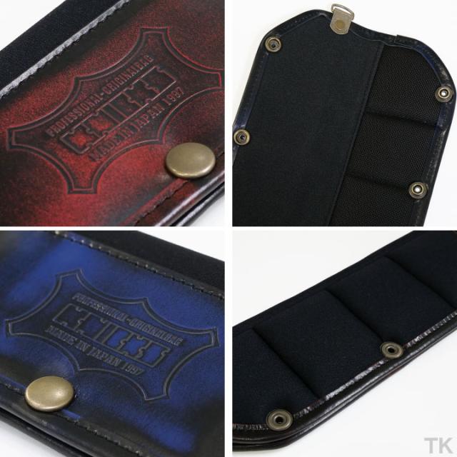 工程としては、鞣しの段階で1層目に基本となるベース色を着色し、色が定着したら2層目にベースと同色系の濃い色を重ねます。