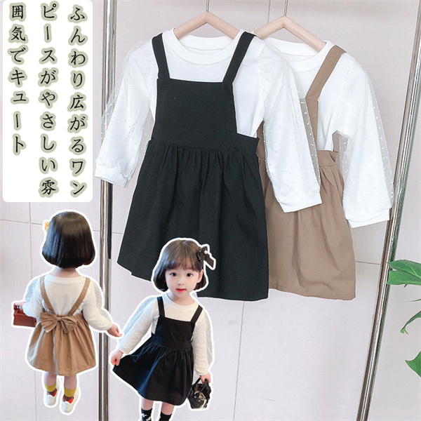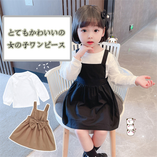 【2点セット】子供服 女の子 ワンピース 長袖 キッズ 子供 ワンピース女の子膝丈 お姫様 長袖 春秋ワンピース 入学式 入園式 卒園式 発表会